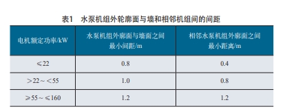 安装和检修的要求,应符合表!规定。当水泵侧面有管道时,外轮廓面计至管道外壁面。水泵机组是指水泵与电动机的联合体,或已安装在金属座架上的多台水泵组合体。