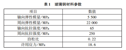 一体化预制泵站的应力由筒底至筒顶逐渐减小,其应变则逐渐增大。随着工作水位和安装高度的上升,简体最大应力下降。随着安装高度的上升,简体最大应变减小!。一体化预制泵站的主要原材料为玻璃钢,因此一体化预制泵站的刚度分析主要是针对玻璃钢筒体的刚度分析。玻璃钢材料参数见表1。笔者以粉质黏土进行土压力的计算。