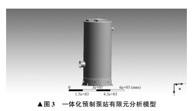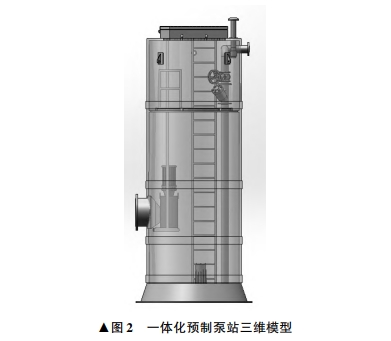 笔者首先对一体化预制泵站的研究背景进行阐述,然后在理论分析基础上,通过 Solidworks 软件进行三维建模,再基于 ANSYS软件对该泵站筒体进行仿真分析,最后提出一种刚度仿真分析的方法,研究结论不仅为一体化预制泵站的优化设计及稳定运行提供参照,还可以为一体化预制泵站的筒体检测提供重要的理论依据。