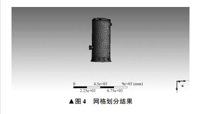 对一体化预制泵站进行实测后,使用SolidWorks三维软件对实物泵站进行建模,三维模型如图2所示有限元分析模型如图3所示。对结构部件进行自适应网格划分,网格划分结果如图4所示。