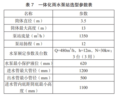 根据需要pg电子游戏麻将胡了APP下载的流量和扬程可以在图集选型表中确定主要参数,进行后续集水池有效容积及液位的计算。张孔峰四认为当下pg电子游戏麻将胡了APP下载的有效容积确定依据不足,胡凯 [0对pg电子游戏麻将胡了APP下载的有效容积进行了优化设计。基于此,综合规范和图集要求,通过集水池有效容积确定有效水深,进而确定三大液位后,利用 19CS03-2 和 20CS03-1 图集中“进水管内底距筒底最小高度”这一参数复核三大液位,最终再反推有效容积和有效水深。以某一体化雨水泵站为例,已知流量为1350m'hh,扬程为 12m。主要选型参数如下表7。