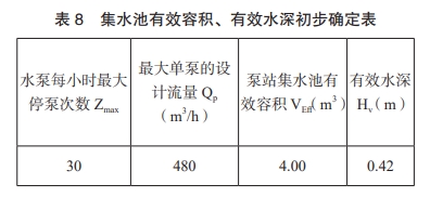 复核条件:污水泵站集水池有效容积需大于等于最大单泵5min 的出水量,雨水泵站集水池有效容积需大于等于最大单泵 30s的出水量。复核后满足条件,故初步确定集水池最小有效容积为4.00m,有效水深为0.42m。