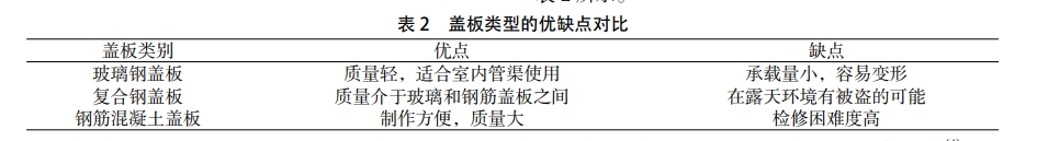 选择盖板时,要考虑设备需要吊装等运行情况,因此,盖板的顶部要设计大小不一的预留孔,泵站的顶部要铺盖板,盖板的选择多样,各有优缺点,如表2所示
